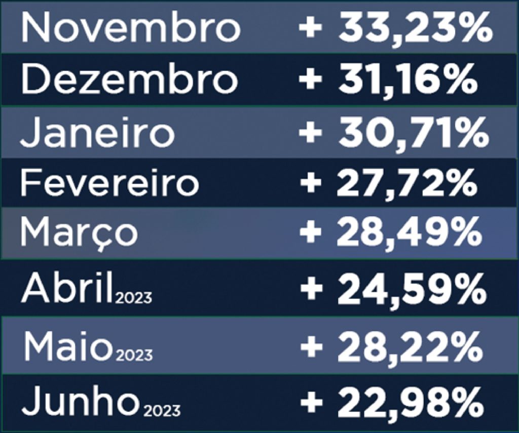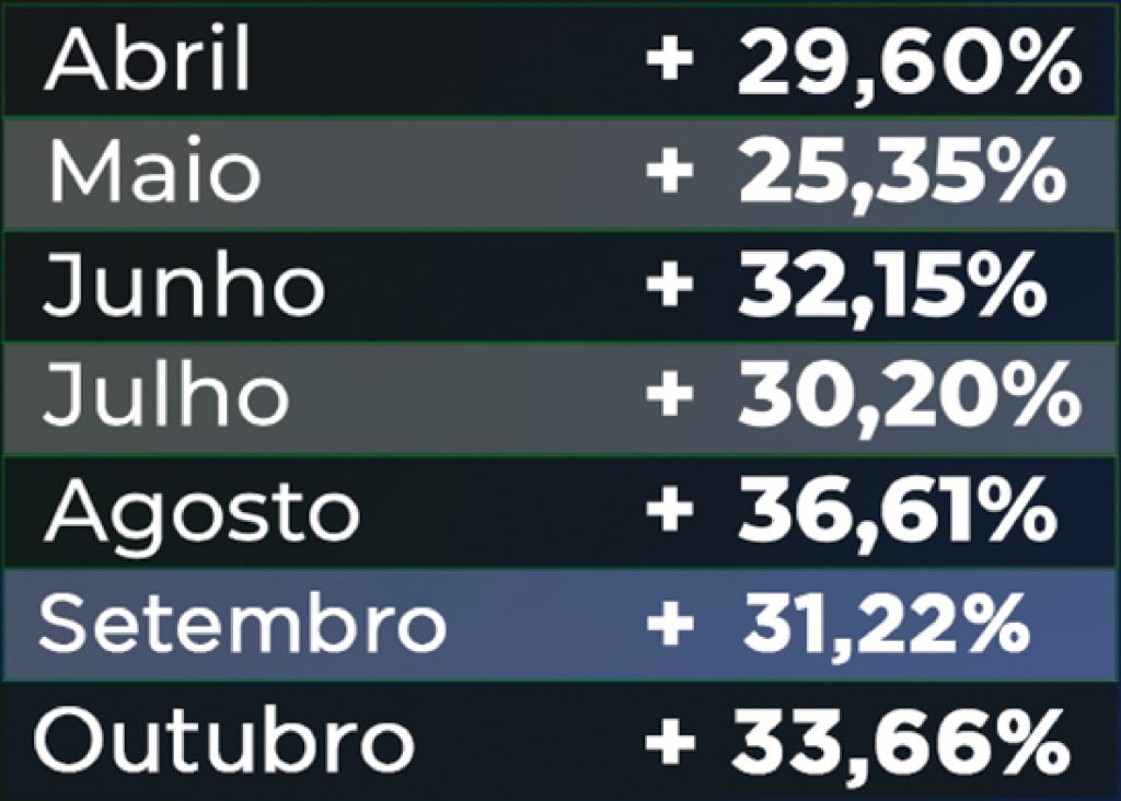 Lucro médio nos últimos 15 meses das operações executadas pelo PLIMBOT.
